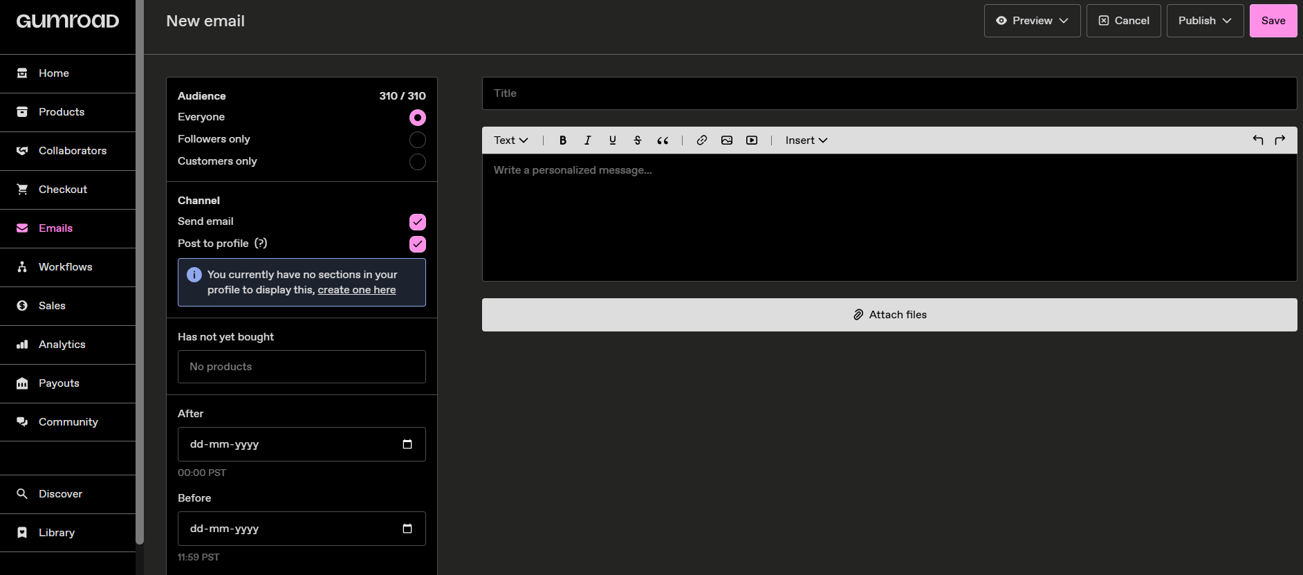 Gumroad isn’t a traditional newsletter platform, but many creators use it alongside their emails and sometimes even as the starting point.